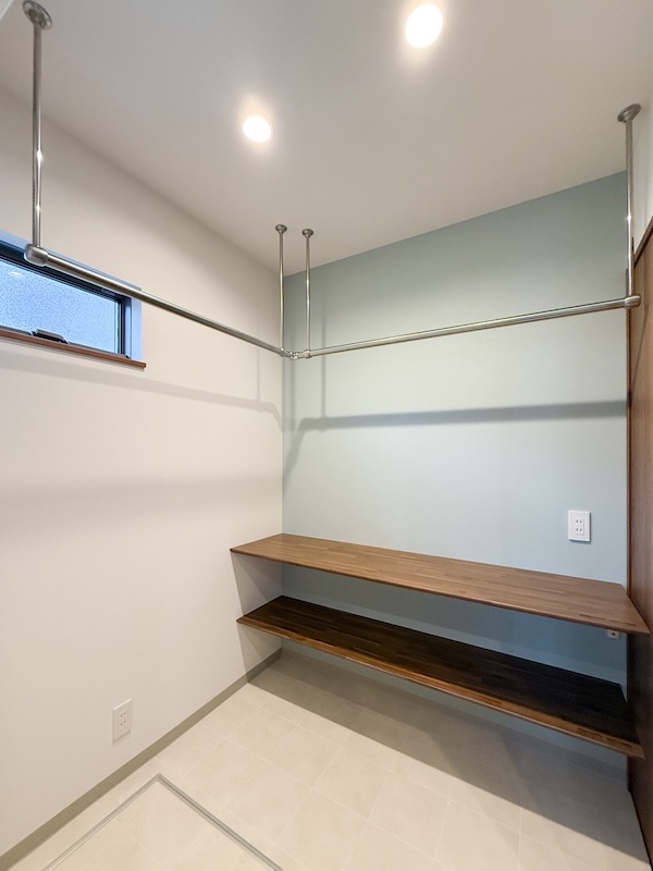 リビングに洗濯物を干していたこれまでの暮らしを見直し、脱衣スペースを広げて室内干し用のパイプを設置。しっかりとした造りで安心感があり、たっぷり干せるのも嬉しいポイントですね。家事ストレスを大幅に軽減できそうです。