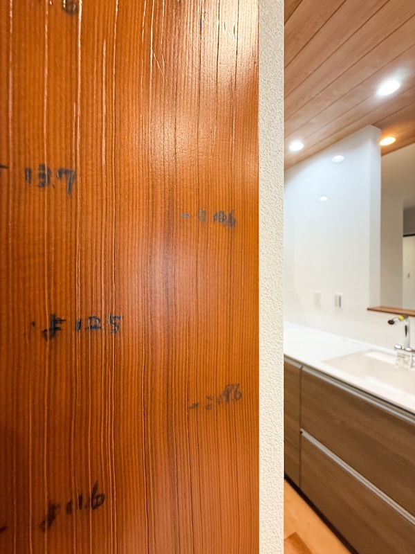 また、子どもたちの成長を刻んだ柱を加工して飾っていただきました。以前の家での思い出が今の暮らしに続いているようで嬉しいですね。