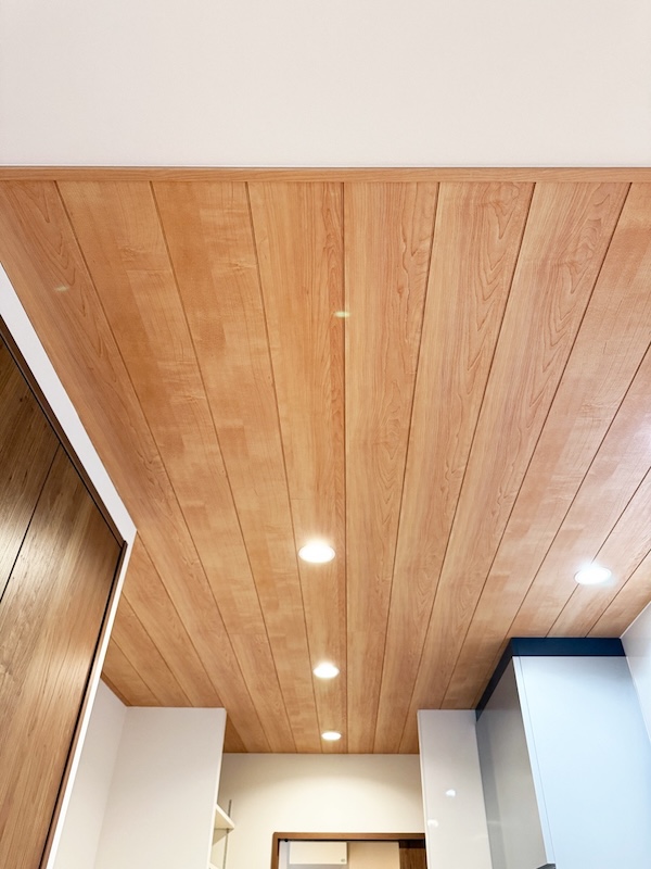 さらに、木目調のクロスになると思っていた天井にウッドパネルが施工されていたのを発見した時の感激といったら・・・。とても素敵なサプライズでした!