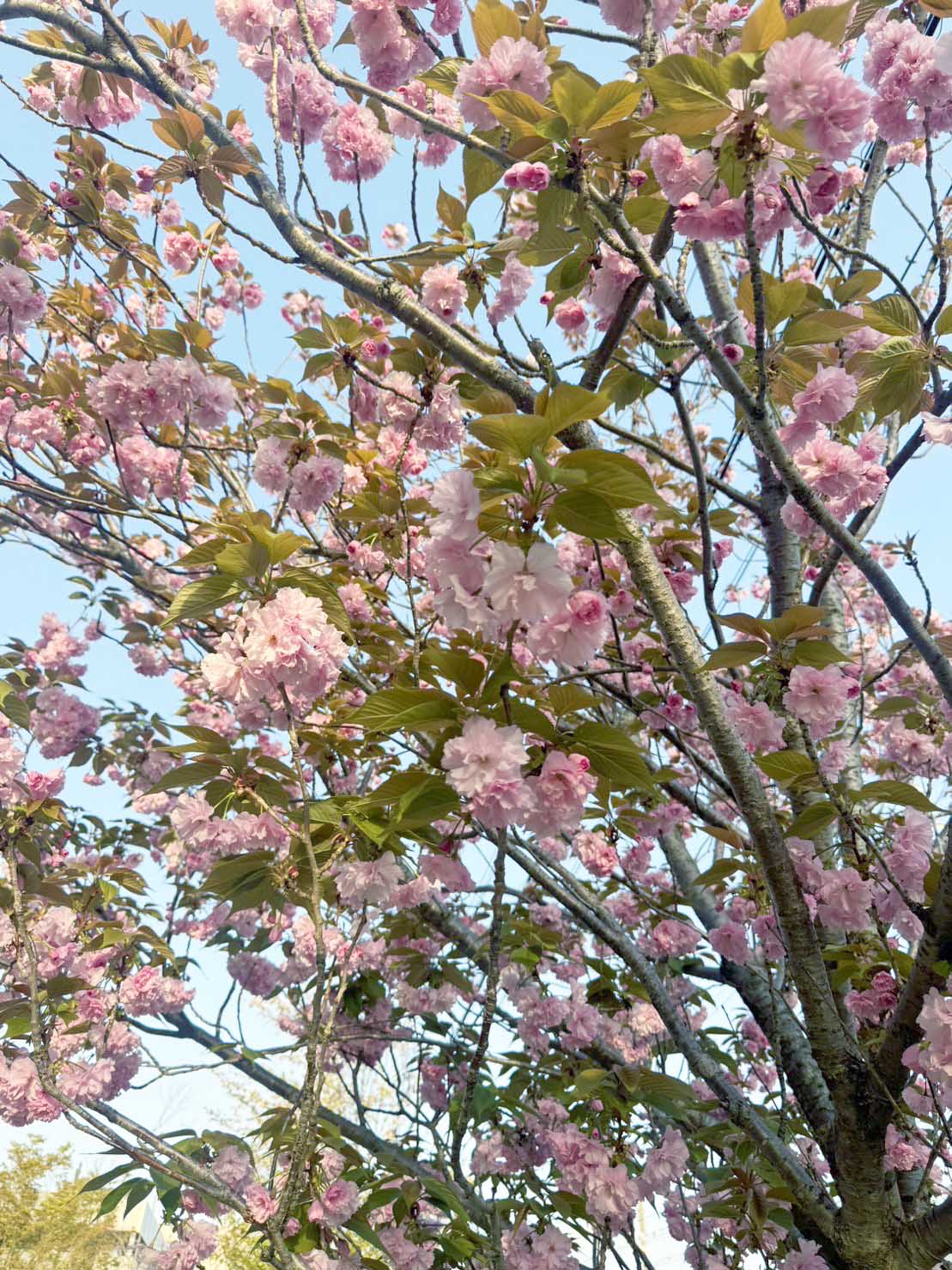 毎年ソメイヨシノが葉桜になる頃、ナイスタイミングで満開を迎えるこの桜が、私は大好き!