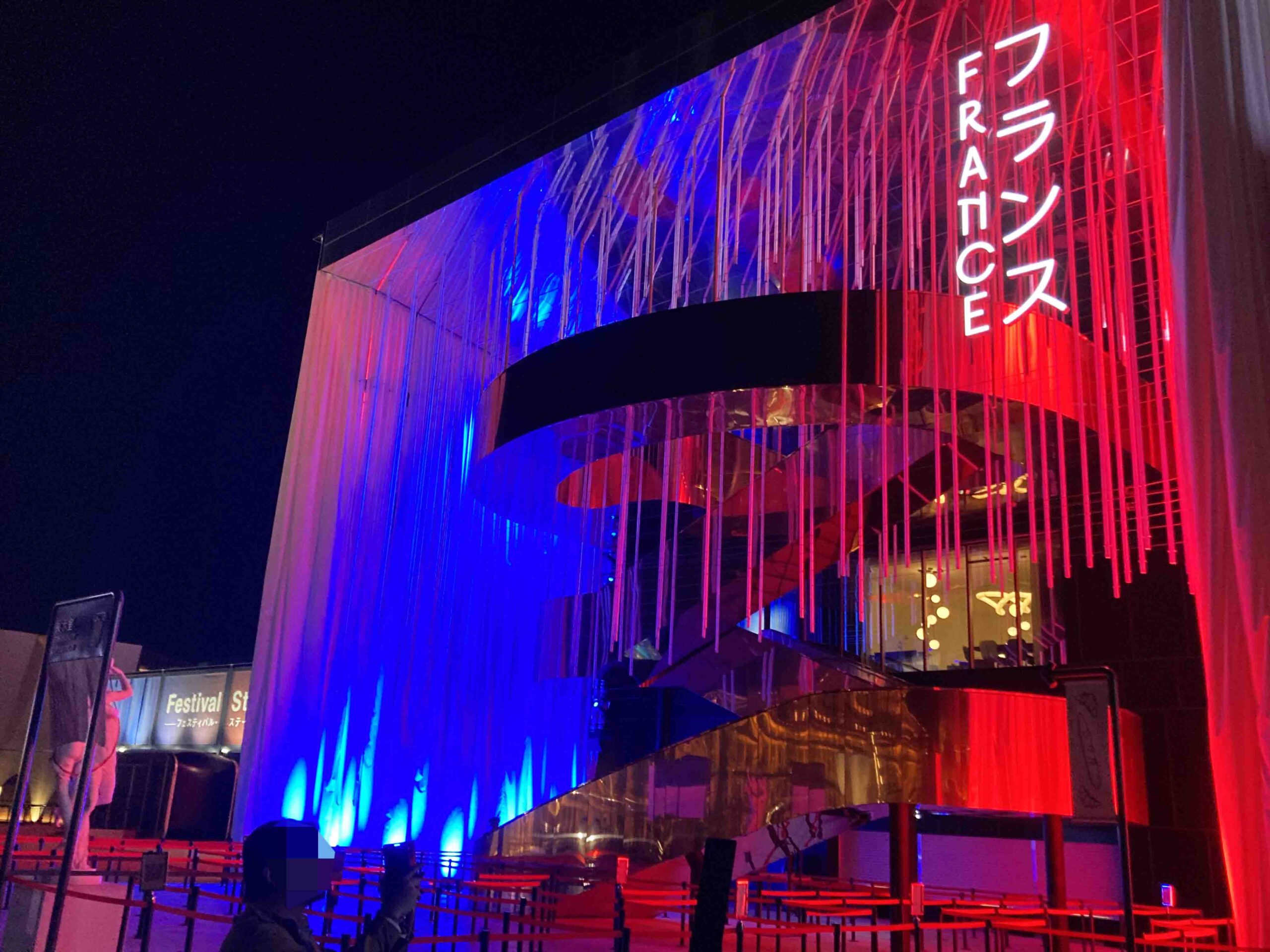 夜まで頑張って滞在。すると、昼間とは違う、各国のパビリオンの美しい表情を楽しめました。