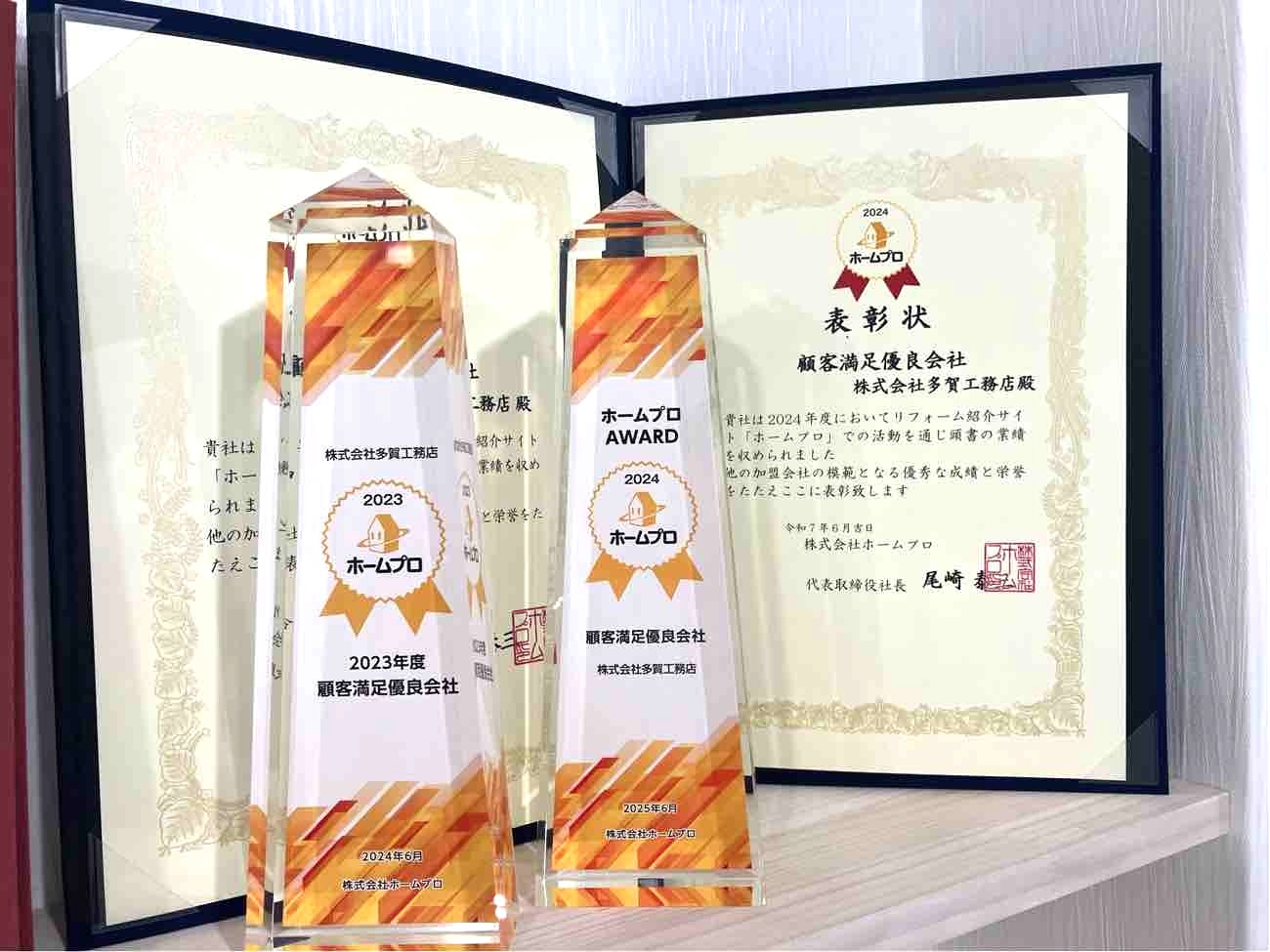 多賀工務店は昨年に続き、栄えある「顧客満足優良賞」を受賞させていただきました!