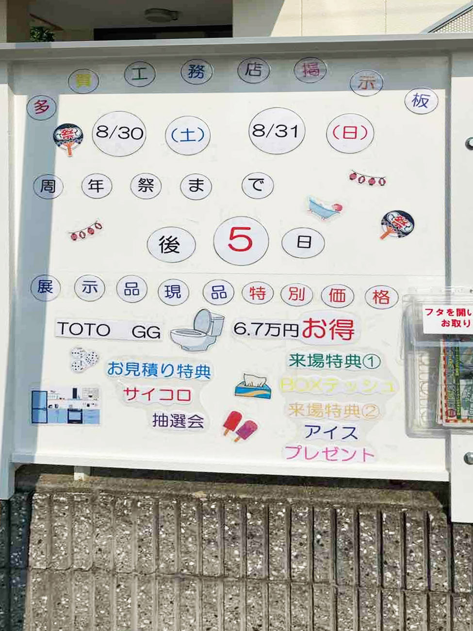先日、尼崎店に設置した掲示板に今週末のイベント告知を張り出しました! 可愛いスタッフお手製のポップで、尼崎水まわりショールームでのイベント開催をカウントダウンしていきます!