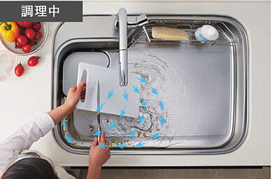 ゴミや水をスムーズに流してくれる「流レールシンク」