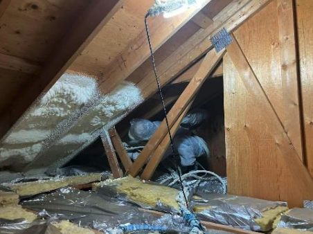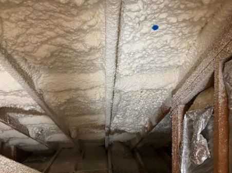 そんなときにおすすめなのが、硬質ウレタンフォームという断熱材を吹き付ける方法です。この断熱材は、現場で水の力を使ってふわっと発泡させ、屋根裏のすき間をすっぽり包み込むように施工します。
