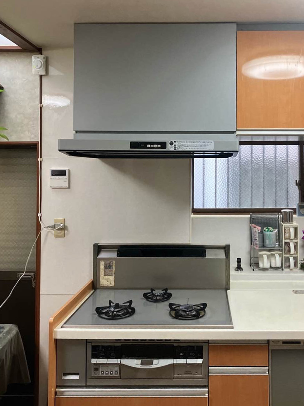 今回ご依頼いただいたお客様は、約20年大切にお使いになられたコンロとレンジフードの交換をご希望でした。