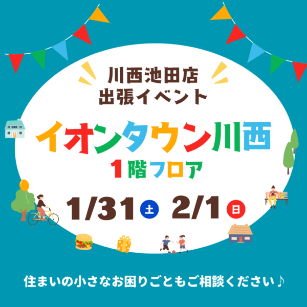 我らが川西池田店が、今週末、イオンタウン川西さんで出張相談会を開催させていただきます!