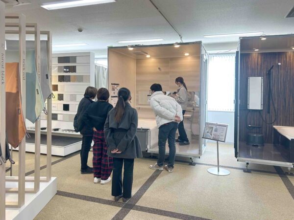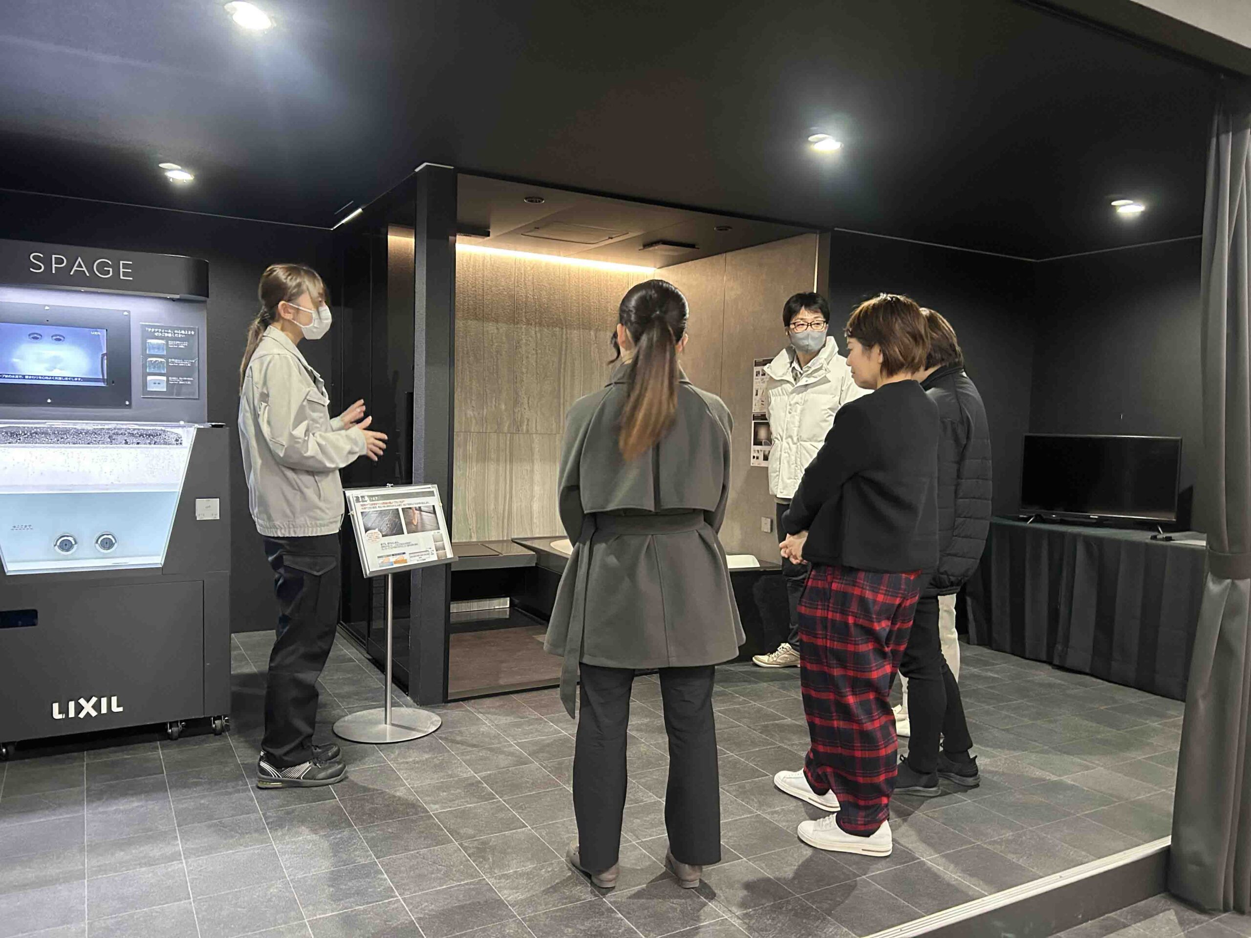 次に、工場内にあるLIXIL浴室製品の展示ブースを見学しました。