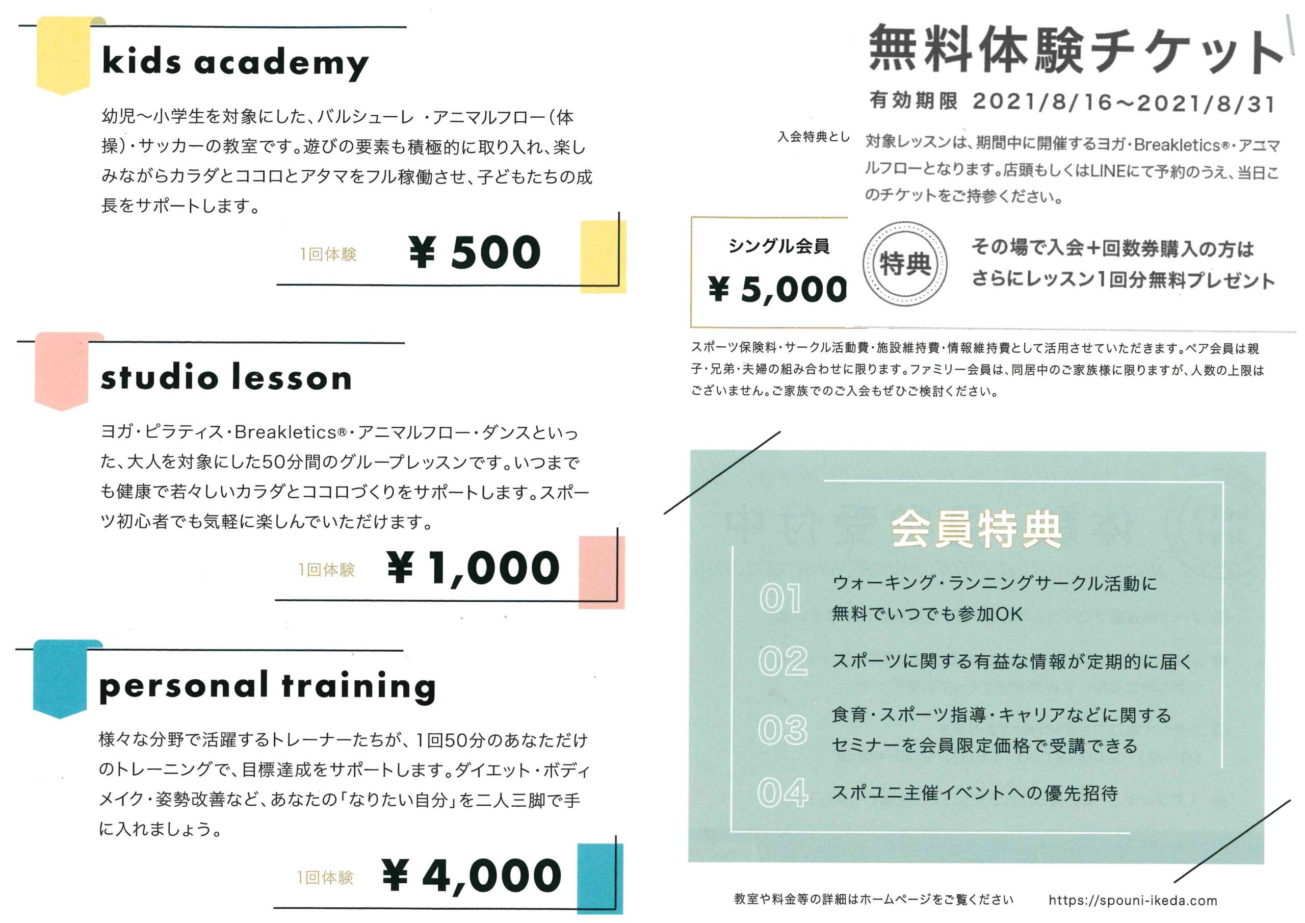 8月いっぱいの無料体験チケットも発行されています(3枚目参照)。