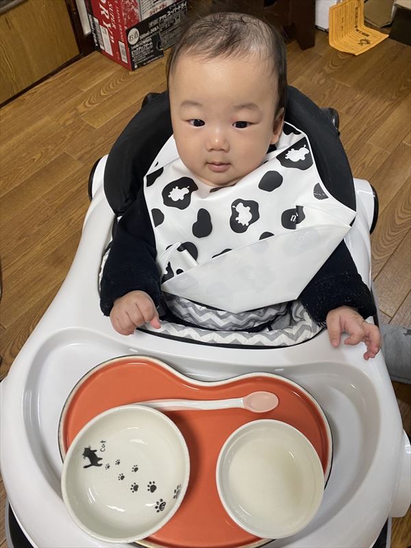 本日は初めての離乳食とストローにチャレンジしたようです。