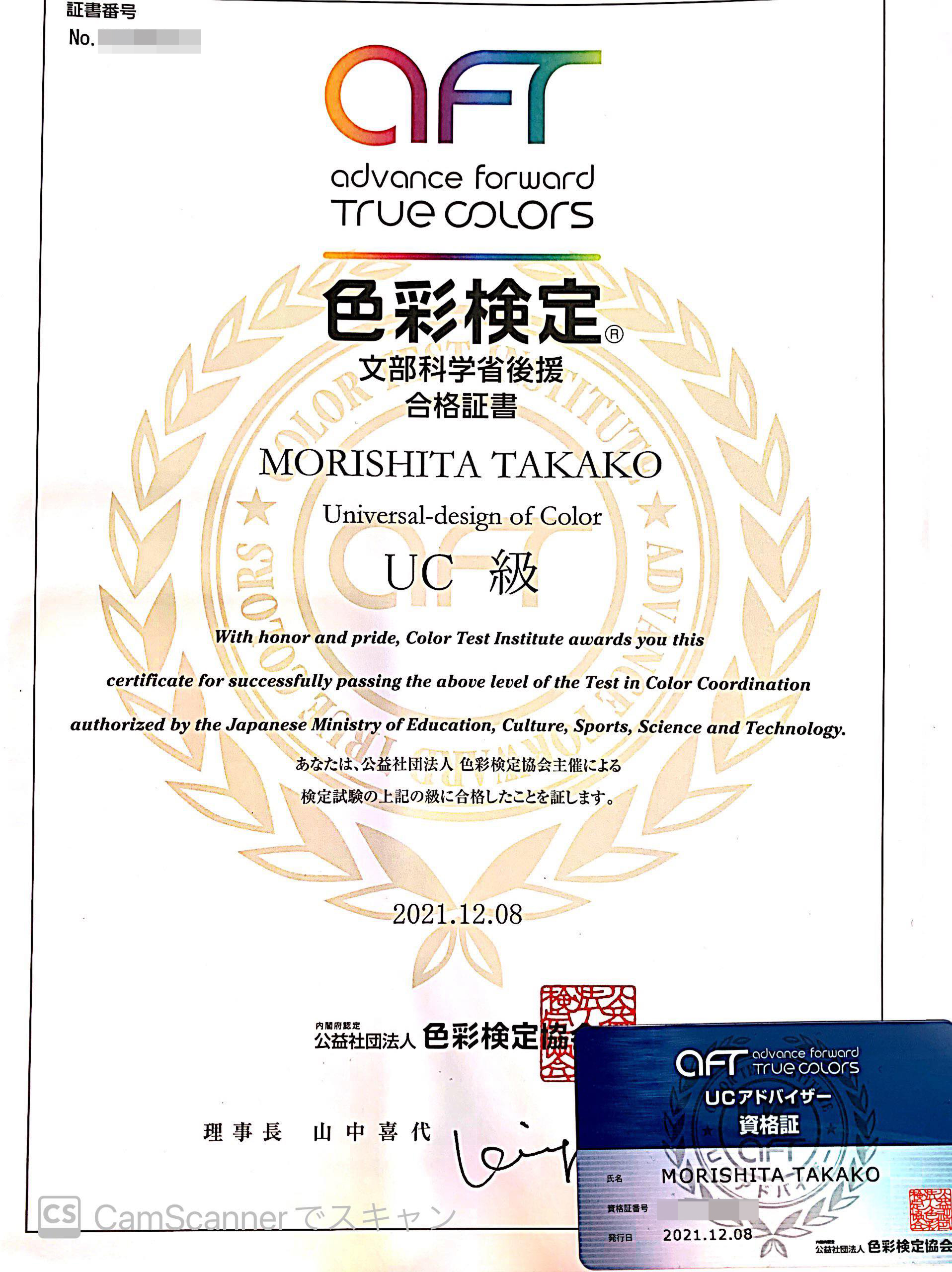 ちなみにこちら ↑ が合格証と資格証になります♪