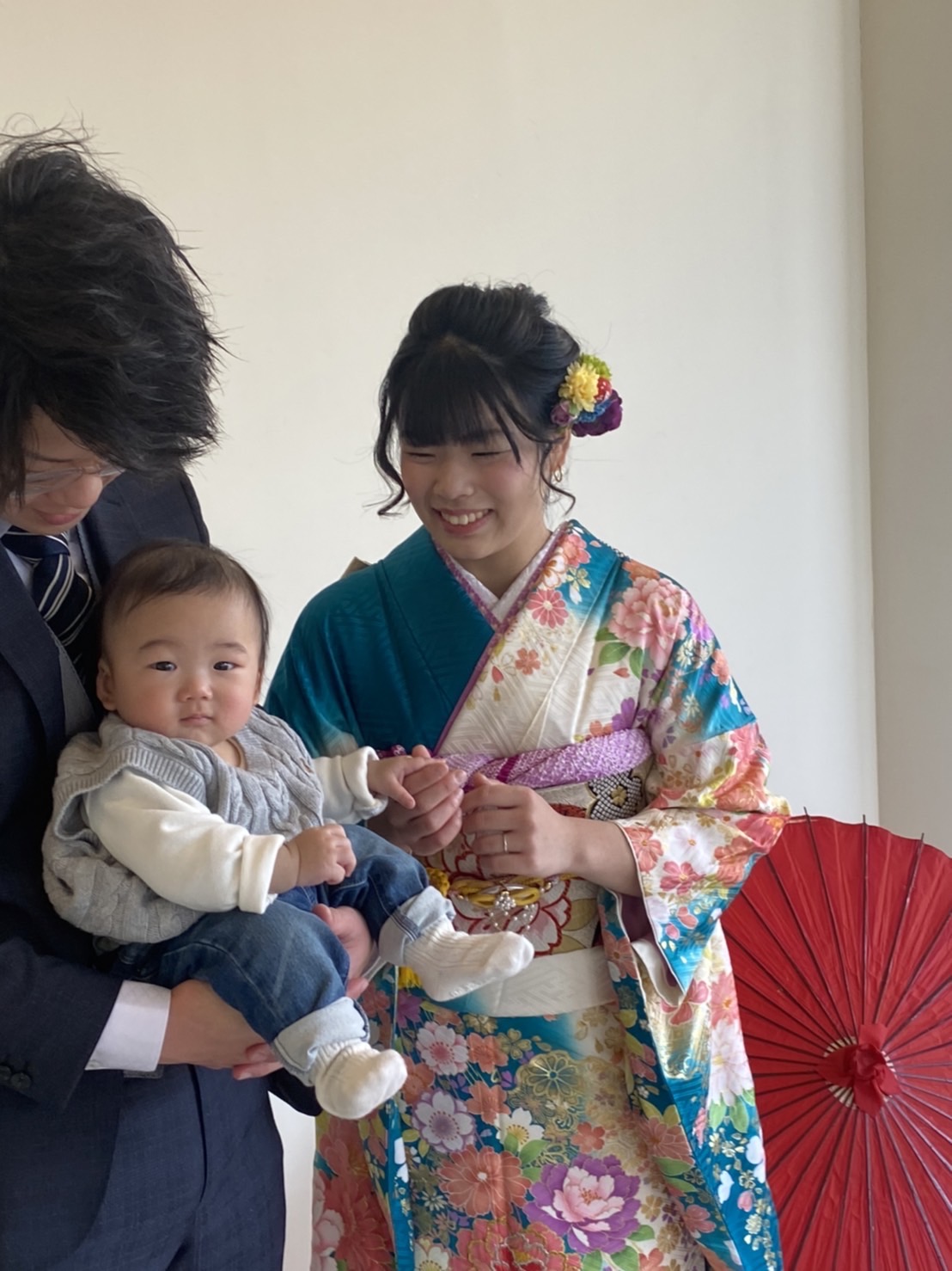 こちらのスタジオでは長女の成人の日もお世話になりましたが、今回は孫とお婿さんもいるので、また違った撮影になりました。