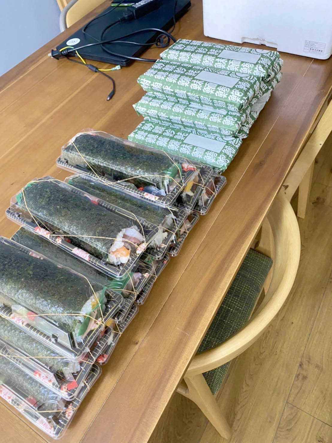 多賀工務店では毎年、地元庄内でNo. 1のお寿司屋さん、「富久田やさん」お手製の巻き寿司をスタッフの皆さんにプレゼントしています。