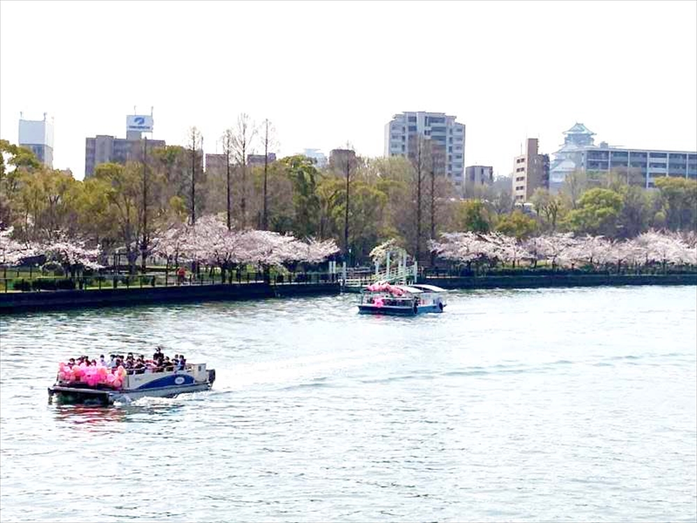 大阪城公園はまだ五部咲き程度でしたが、大川沿いは七~八部咲きで、十分お花見を楽しめました。