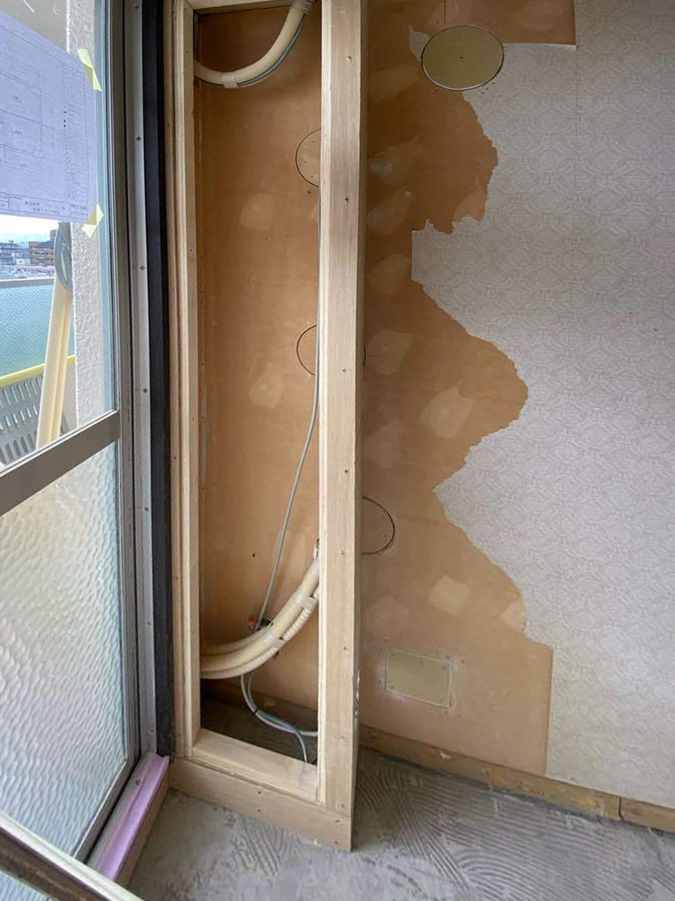 ここで配管を完全に隠蔽してしまうと、将来的にエアコンが故障した際の修