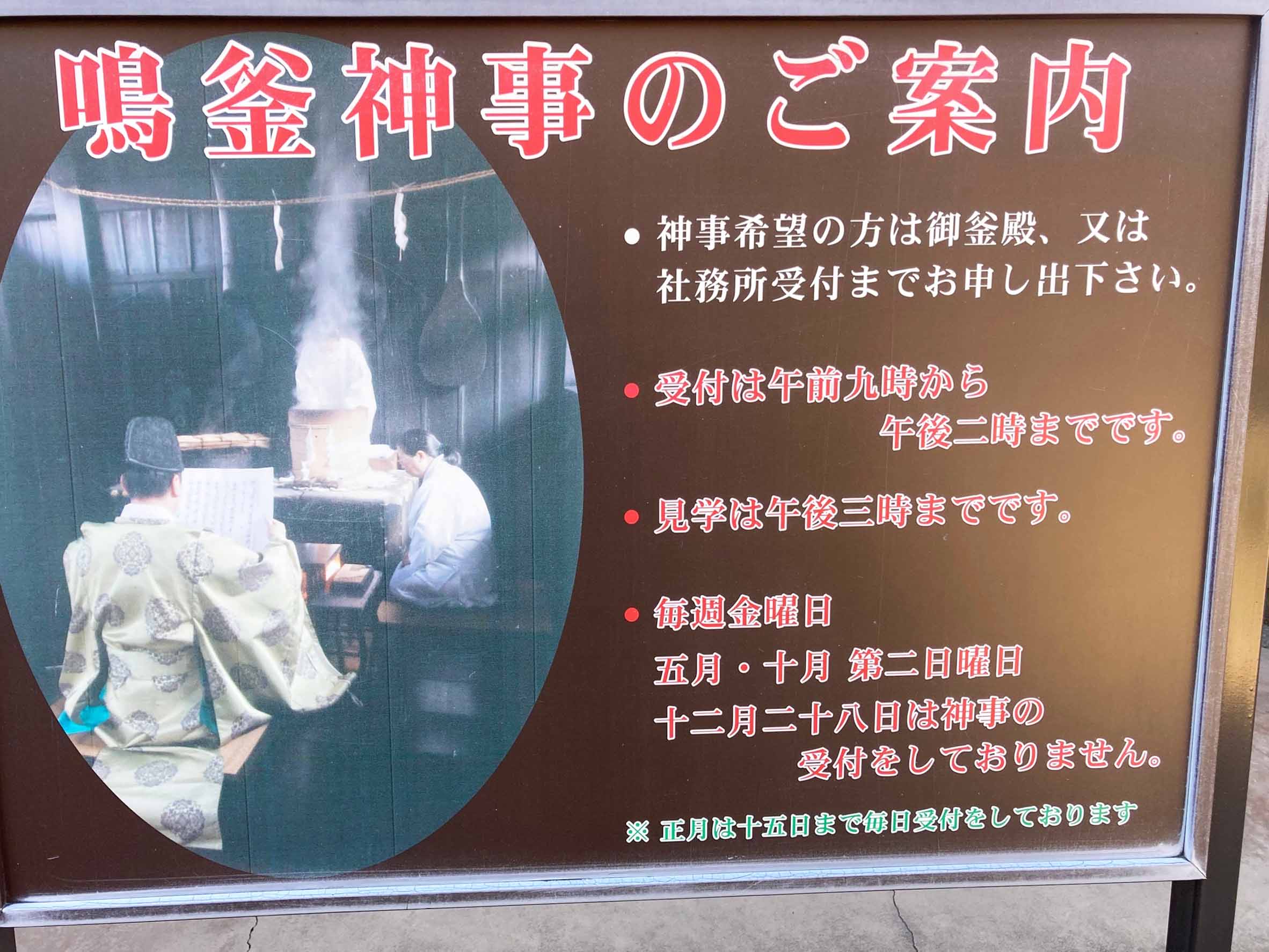 訪問した際、回廊の横の建物で行われていた<鳴釜神事>を目にしました。