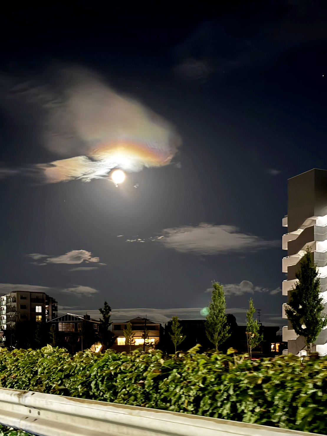 よく見たら虹のように周りが七色でした。これは光環という現象だそうですね。