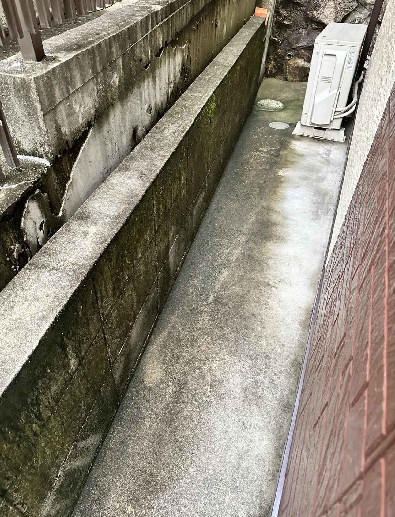 今回は高圧洗浄のみのご依頼でしたが、多賀工務店の塗装事業部は、外壁や屋根の塗装をご依頼いただいた際に、このようにお住まいのまわりを高圧洗浄させていただいております。