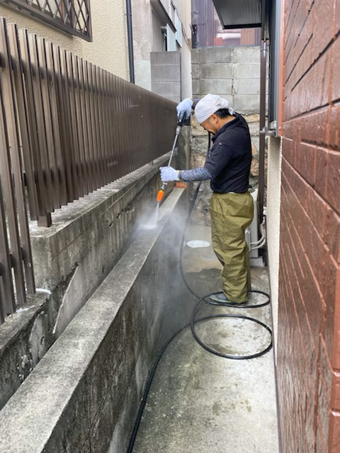 先日、豊中市のK様より、戸建てのお住まいの外周の壁と犬走りの高圧洗浄清掃をご依頼いただきました。