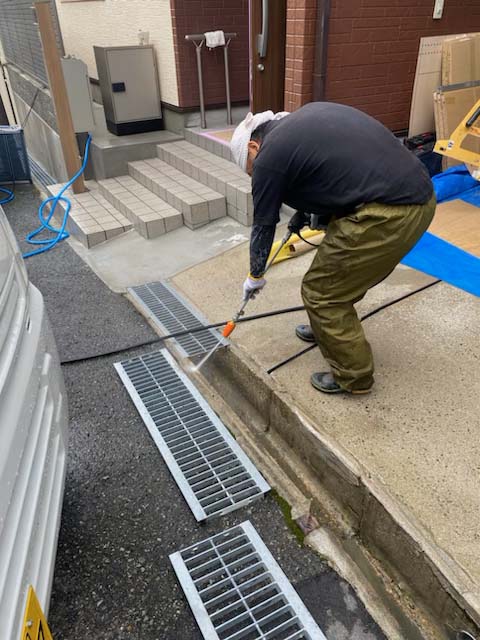 塗装事業部による高圧洗浄で、お施主様宅のまわりをピカピカに♪