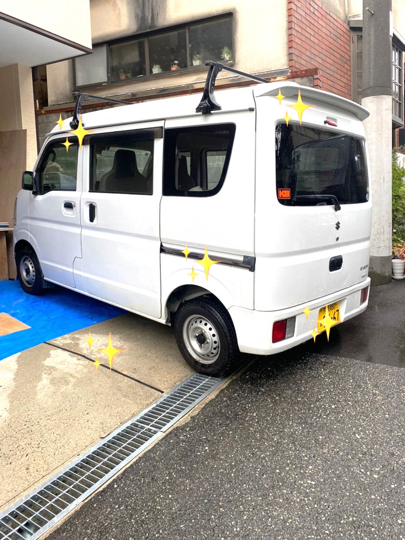 K様邸の敷地に駐車していた大工の酒井棟梁の車も、なぜか当然のようにピカピカになっちゃいました〜笑