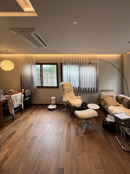 クロス貼りだった1面の壁にシリカライムを施工したことにより、もともと素敵なLDKが味わいを増し、よりグレードアップした空間になりました!