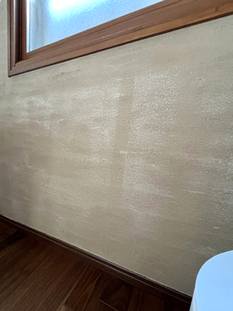 とっても寒い時期の施工だったので乾きが遅く、施工途中で上記のような白華現象が起きるトラブルがありましたが、そこはしっかり手直し。